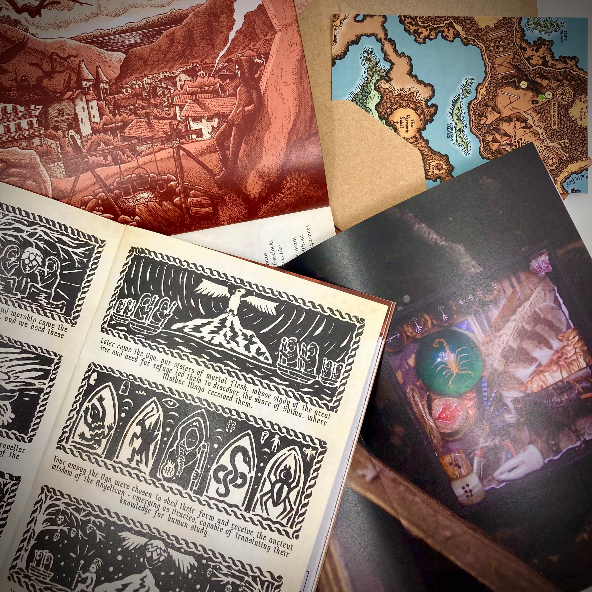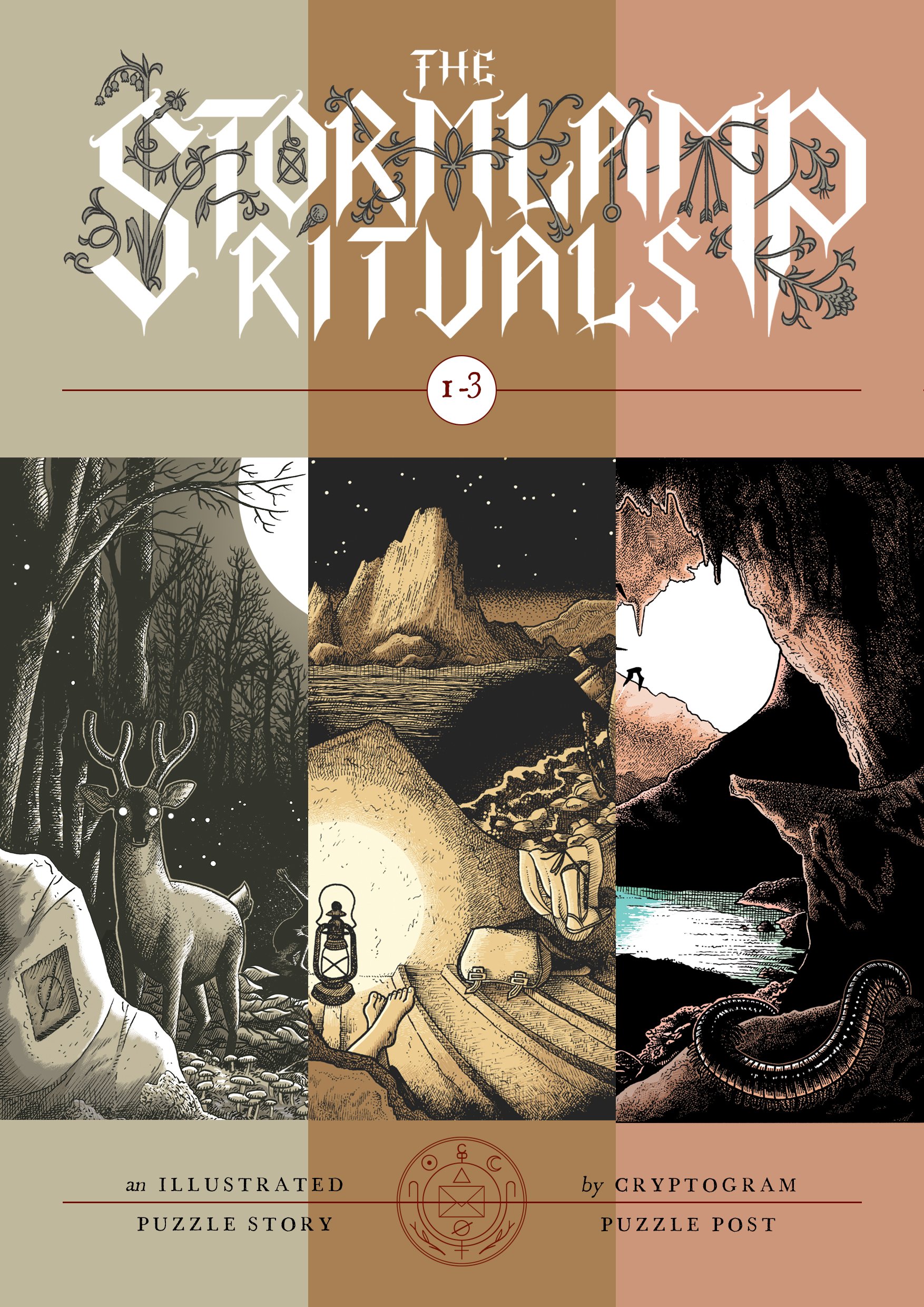 In these three zines, you will discover hours of gameplay materials, hand illustrated prose and puzzles, poetry, photography, a prize postcard and suggested playlists for full immersion. The Stormlamp Rituals is filled with problem-solving fun and laden with miniature mysteries for you to untangle.